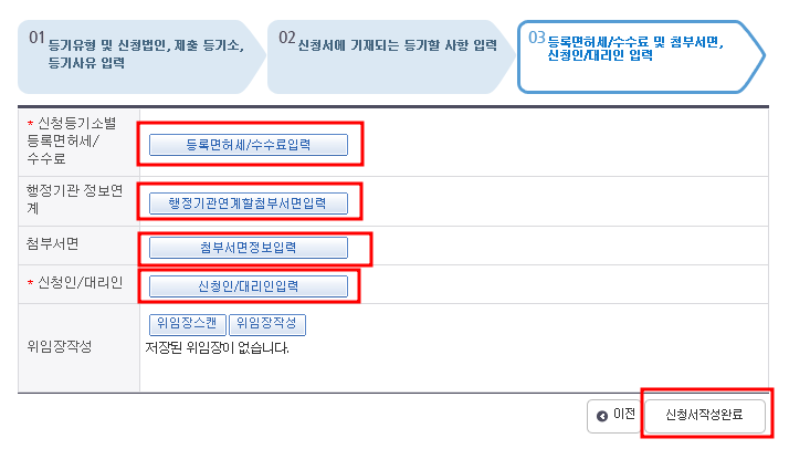 a) 등록면허세 수수료 입력 : wetax에서 발급받은 등록면허세 납부확인서를 참조하여 금액 입력 할 것. 전자등기 수수료는 필자의 경우에는 2,000원 이었으나 각자 관할 등기소에 문의 할 것.