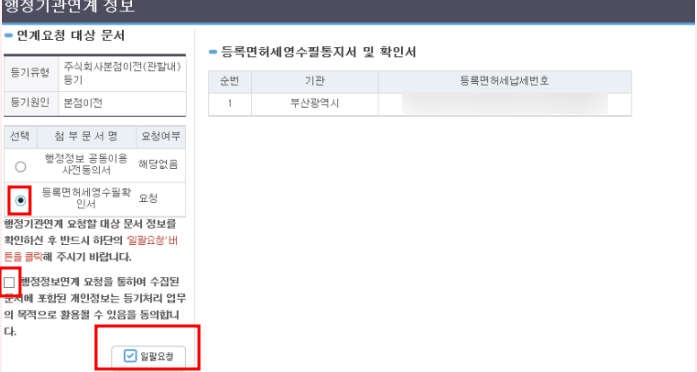 b) 행정기관연계할첨부서면입력 : 아래 2번째 캡쳐사진 참고